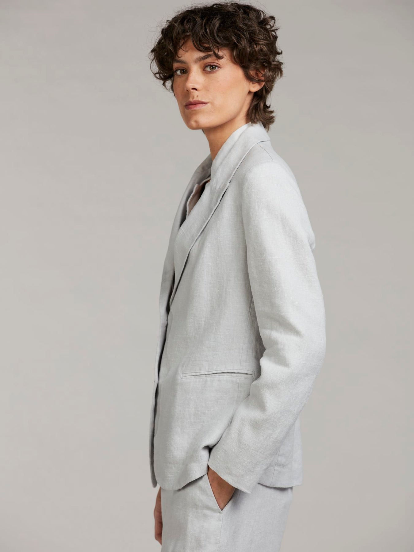 Linnea Blazer fra Stenströms. En stilren blazer, her i lys grå. Blazeren er laget i ren lin. Kombiner med Louise Pants for et komplett antrekk.