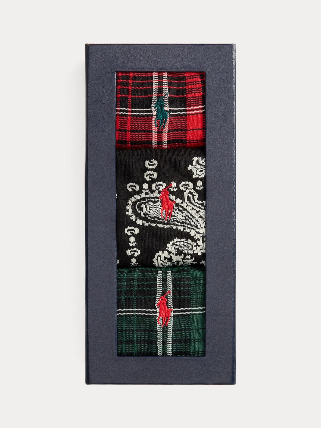 Bandanna & Plaid 3-Sock Gift Set fra Polo Ralph Lauren. 3-pk sokker i en gaveeske. Et par med paisley mønster og to par med lekkert rutemønster.