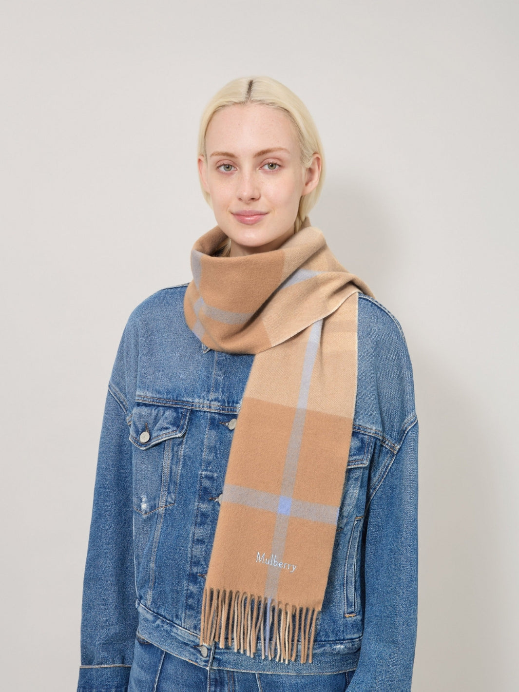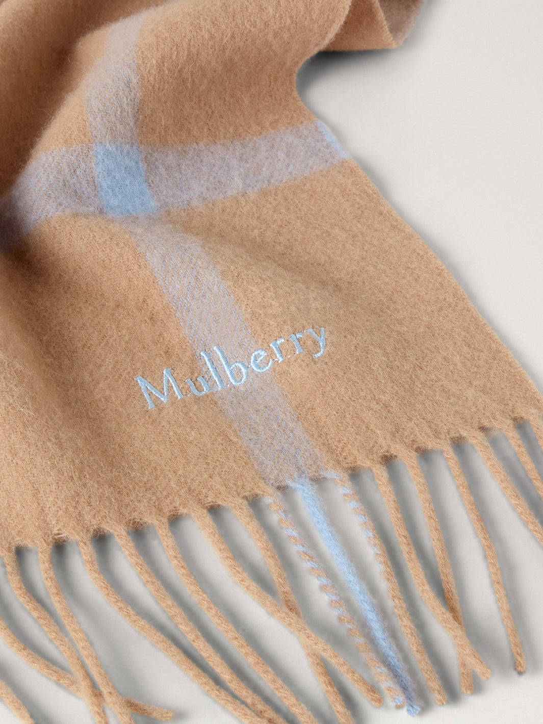 Mulberry Small Check Merino Wool Scarf Camel & Poplin Blue