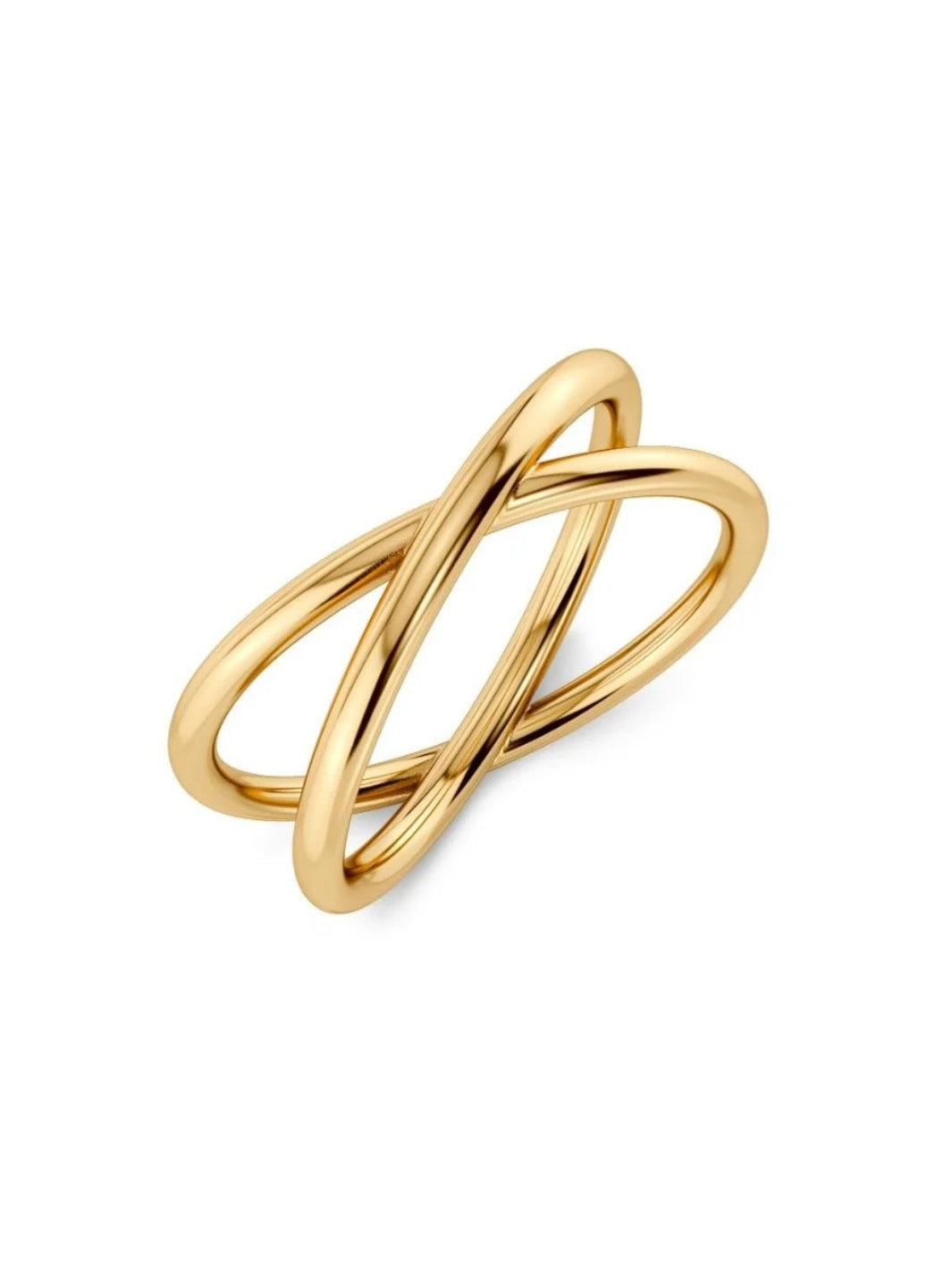 Alexa Ring S fra Edblad. En tynn gullbelagt ring med en vakker X-form som sitter pent på fingeren.
