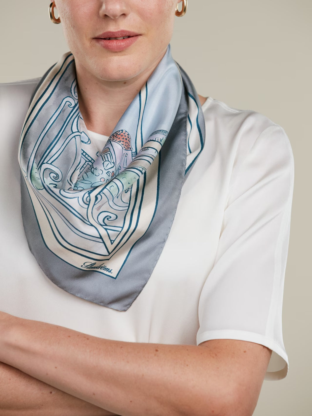 Silk Scarf fra Stenströms. Klassisk silkeskjerf med trykket mønster, her i lys blå.