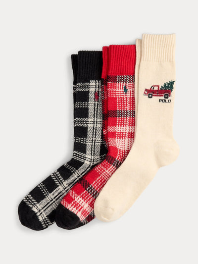 TRUCK-INTARSIA & PLAID 3-PK SOCK GIFT SET Assortert