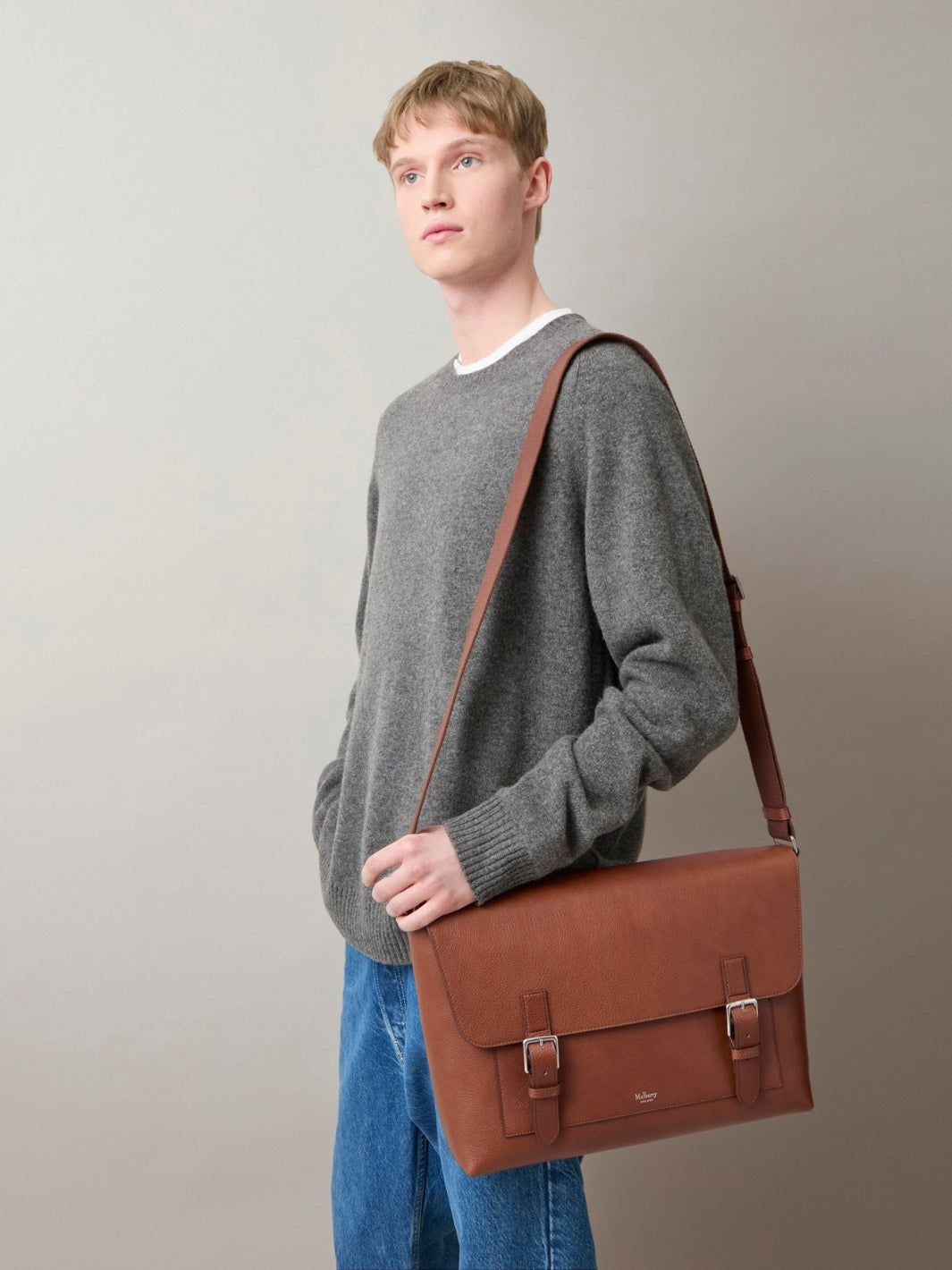 Chiltern Crossbody Messenger fra Mulberry. En moderne og funksjonell veske som rommer en 13-tommer bærbar PC. Den har to romslige lommer og en justerbar nettingstropp for komfortabel bæring. Passer like godt til jobb som til hverdags.