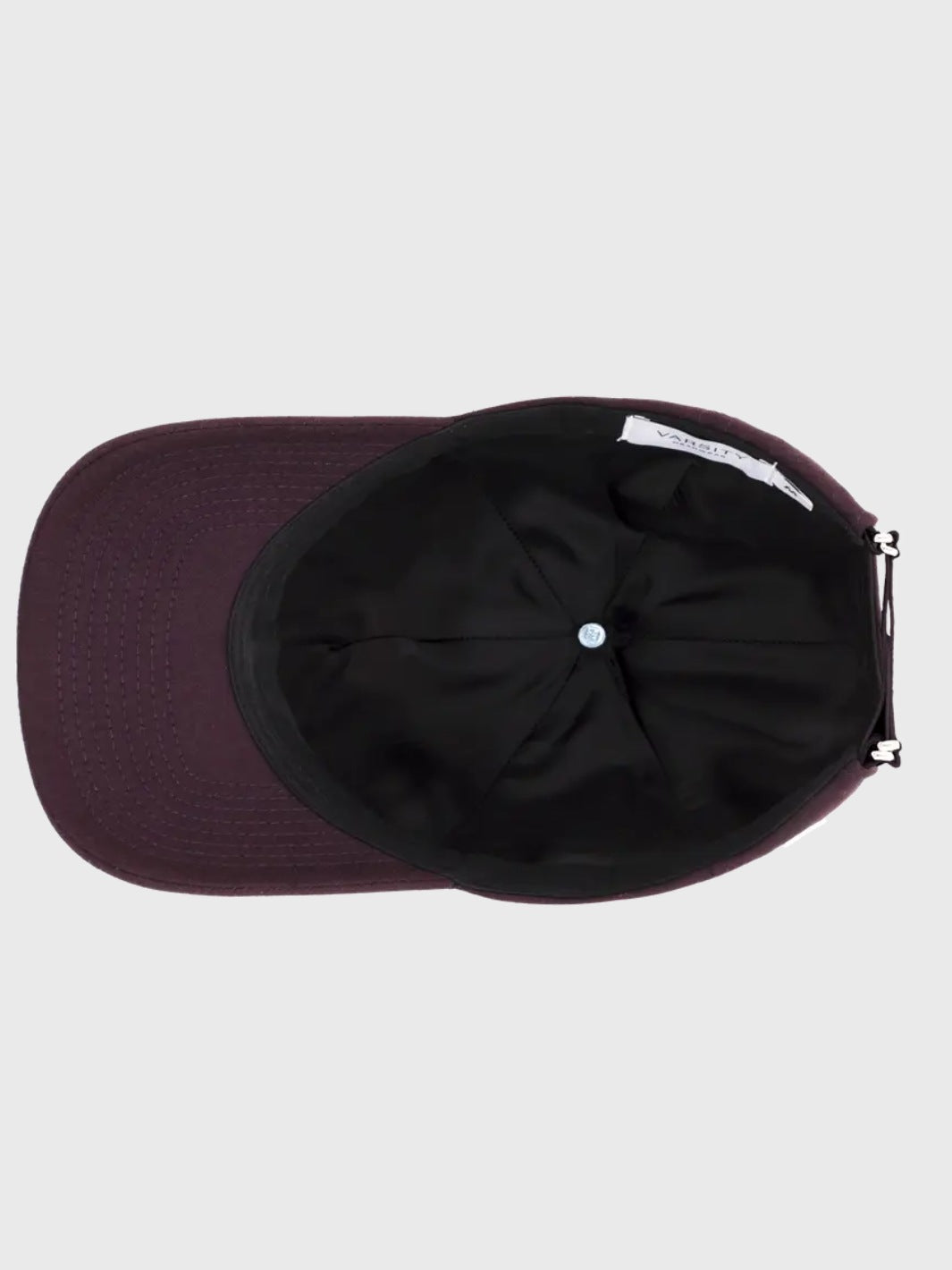 Legacy Structured Cap fra Varsity. En burgunderrød caps i eksklusiv italiensk ulltwill, designet med en teknisk membran som gjør den både vann- og vindtett.