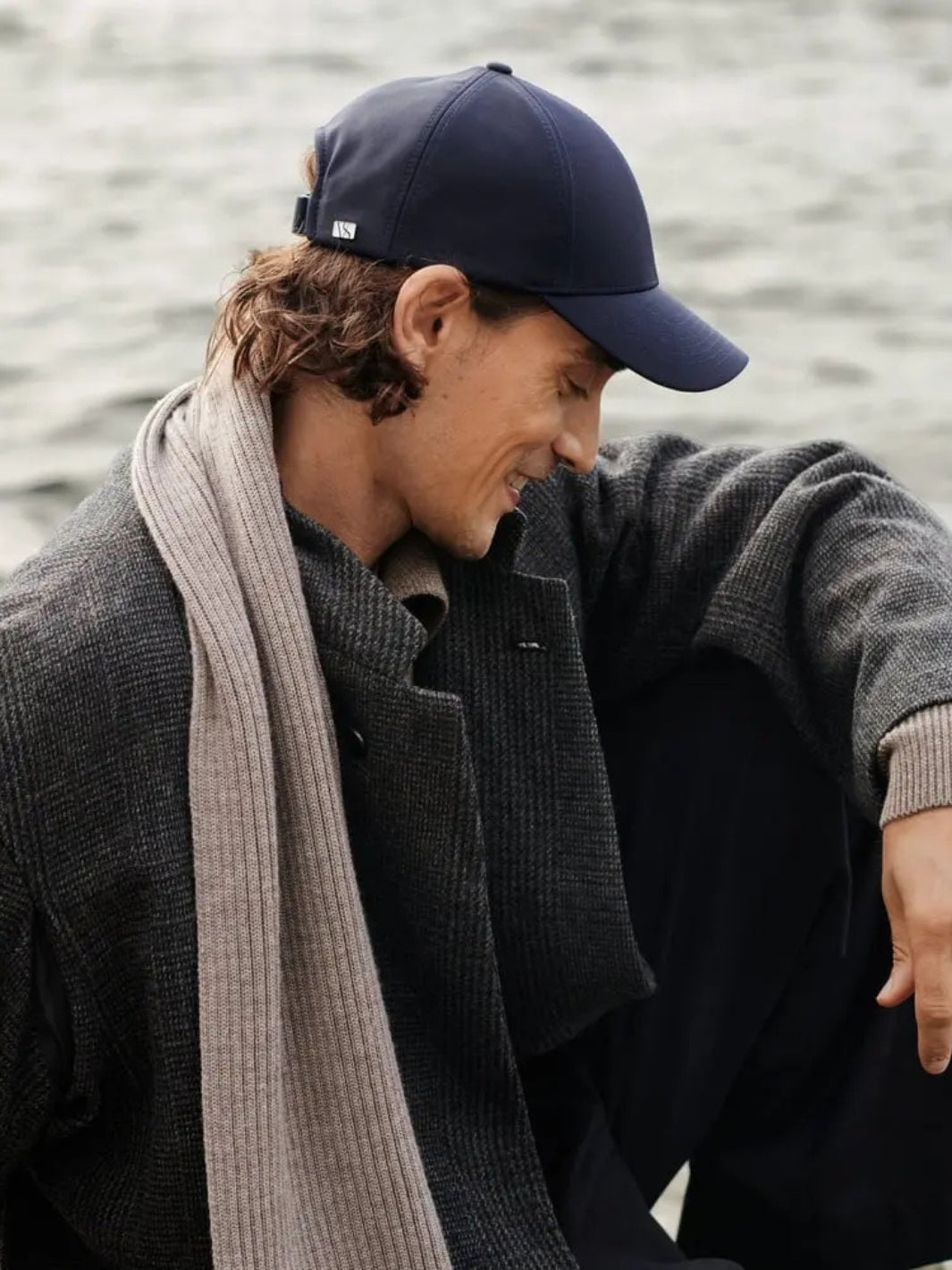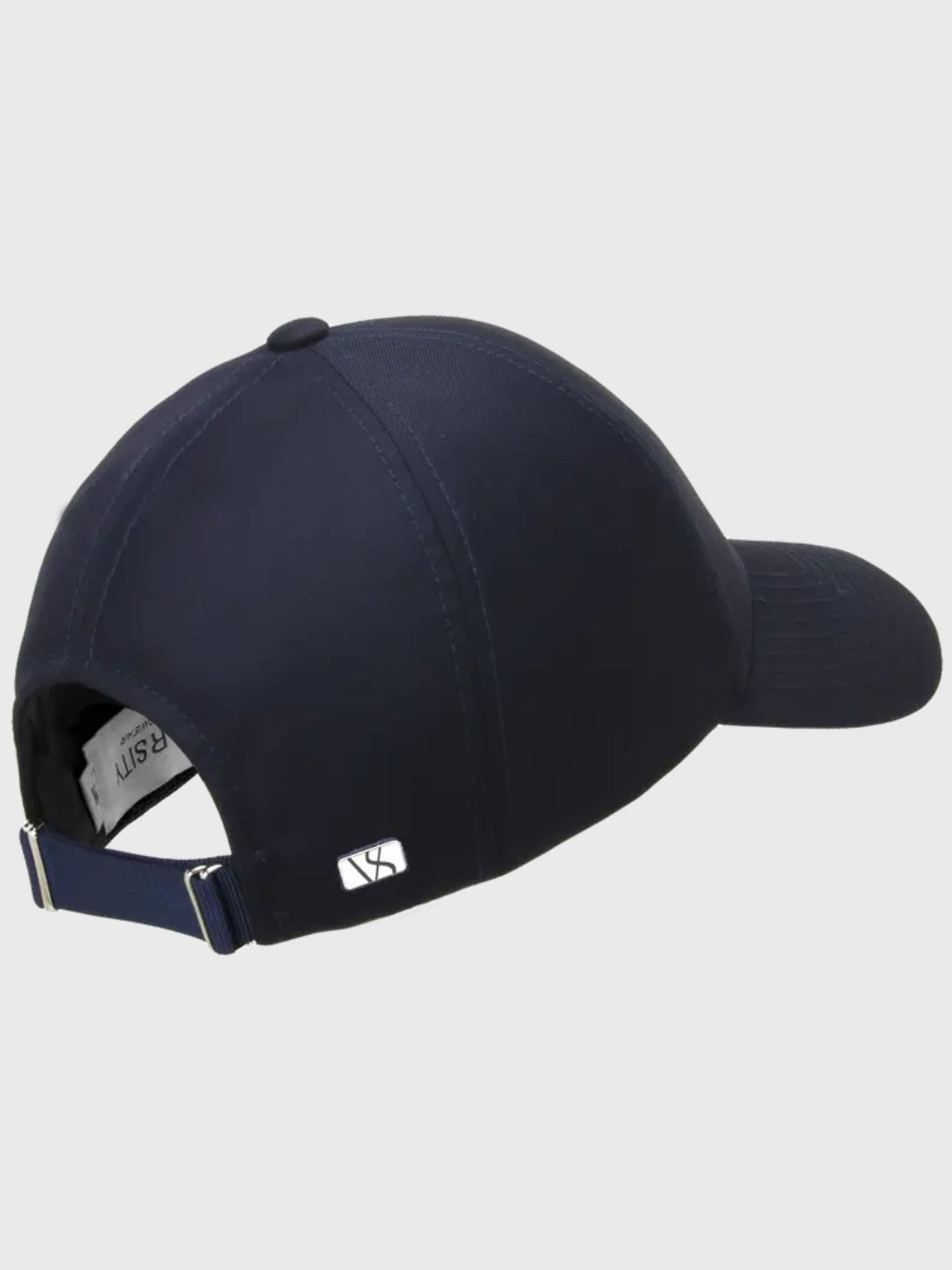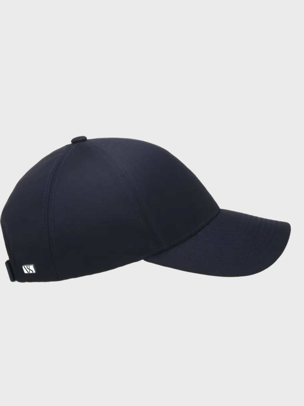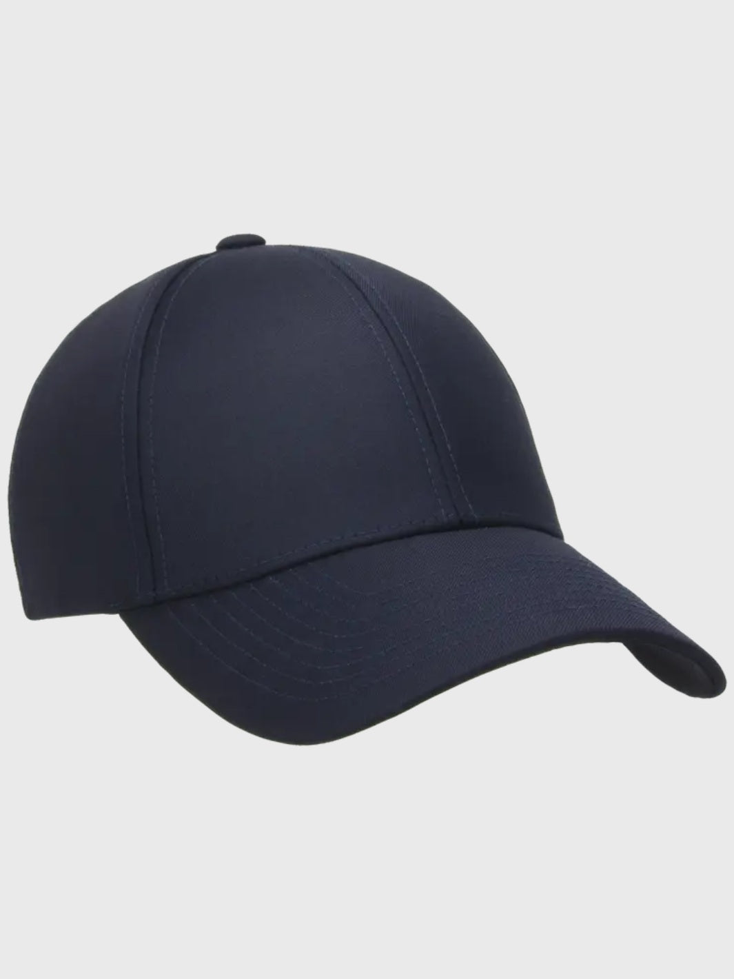 Legacy Structured Cap fra Varsity. En marineblå caps i eksklusiv italiensk ulltwill, designet med en teknisk membran som gjør den både vann- og vindtett.