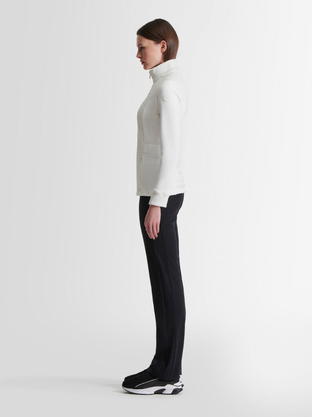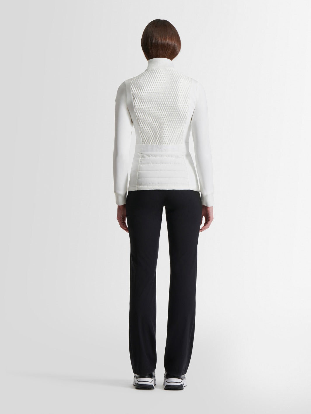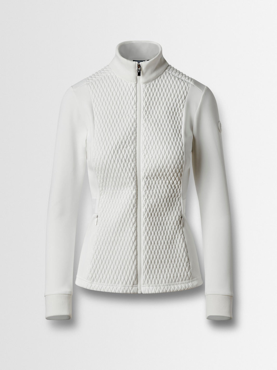Meryl Jacket fra Fusalp. Vannavstøtende jakke laget i et Powerstretch materiale. Midjen er fremhevet med kontrastdetaljer for et feminint utseende. Jakken har to håndlommer med glidelås.
