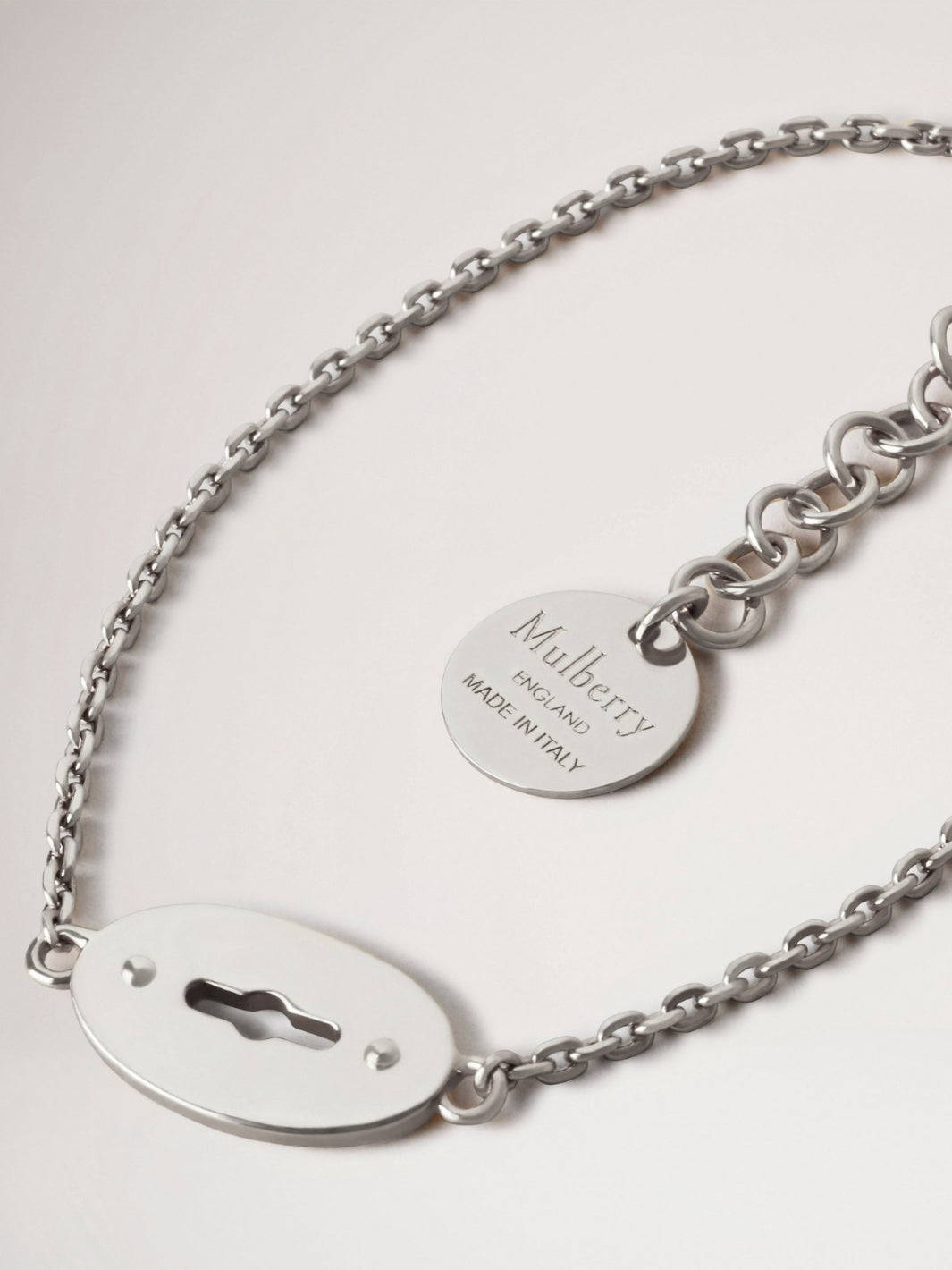 Bayswater Bracelet fra Mulberry. Et elegant armbånd med oval medaljong med logo formet som den ikoniske Postman's Lock.