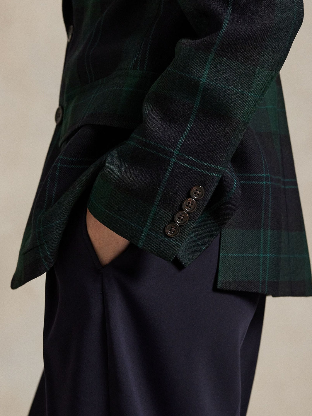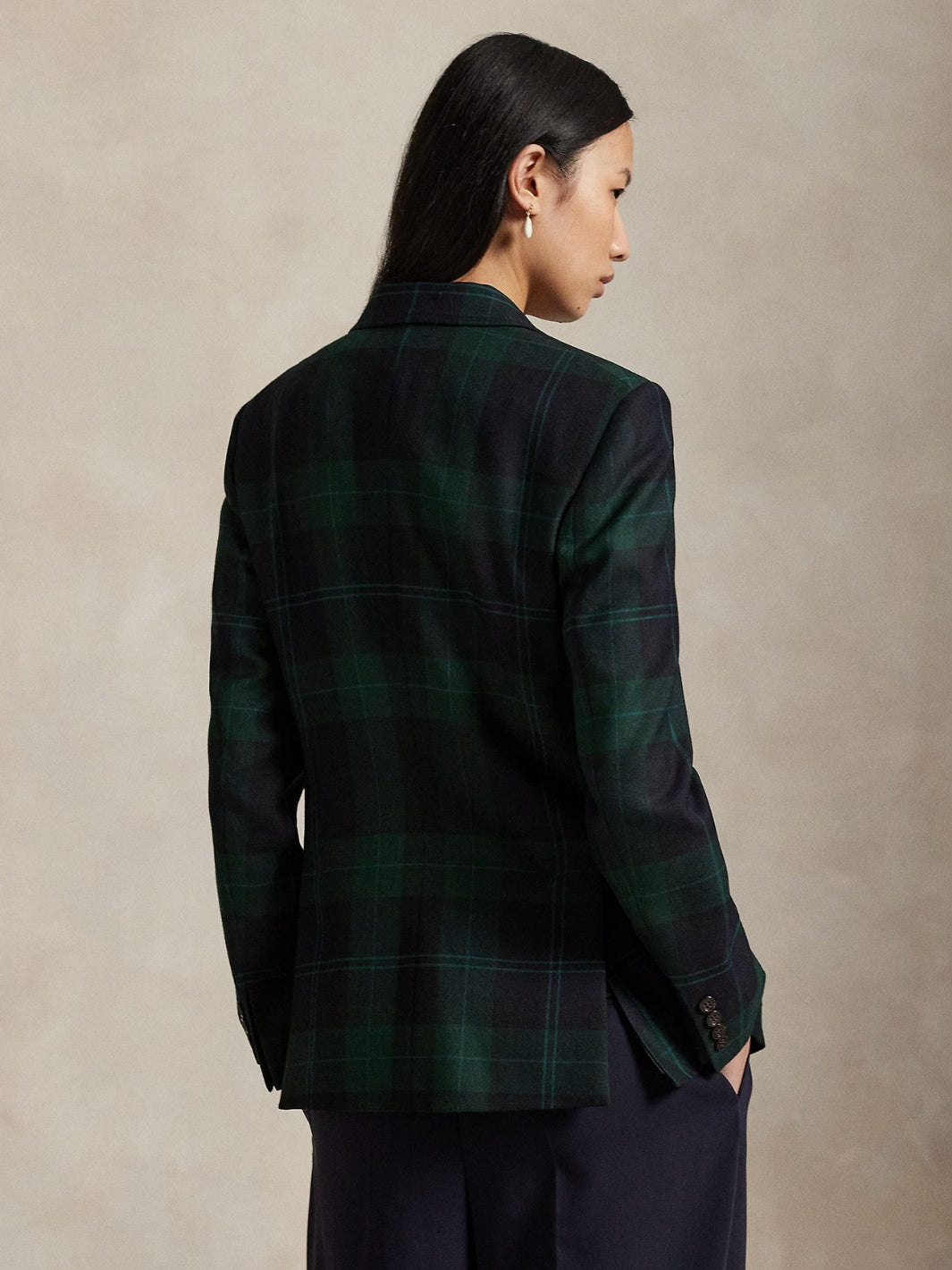 Single-Breasted Plaid Wool Blazer fra Polo Ralph Lauren. En elegant enkeltspent blazer i italiensk, børstet ull med et garnfarget rutemønster i heritage-stil. Blazeren er delvis fôret og er formsydd med front- og ryggsømmer for en flatterende passform.