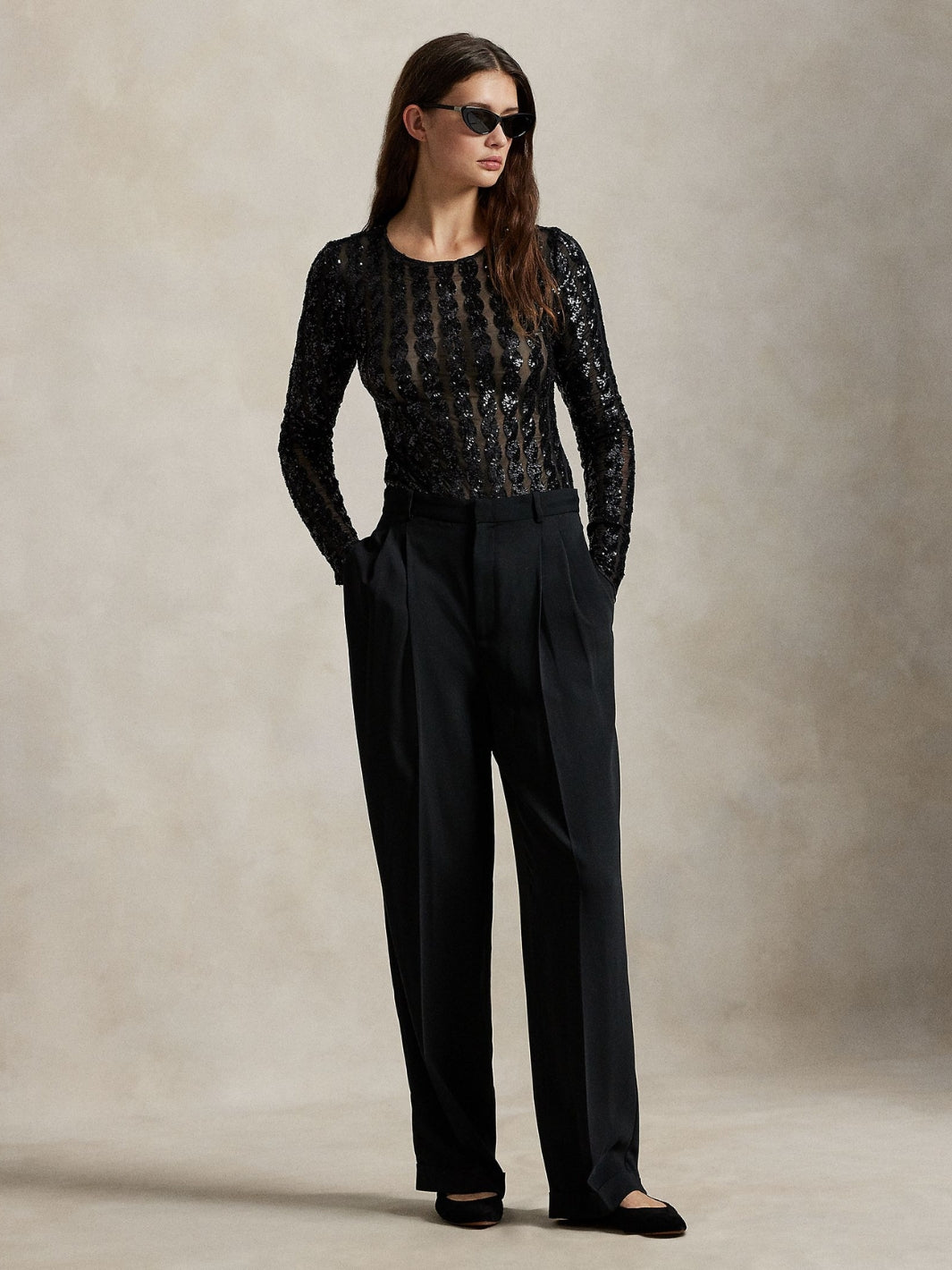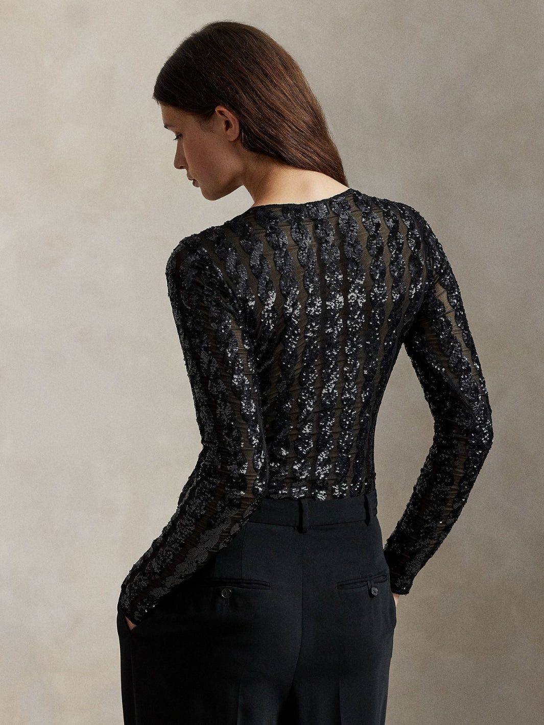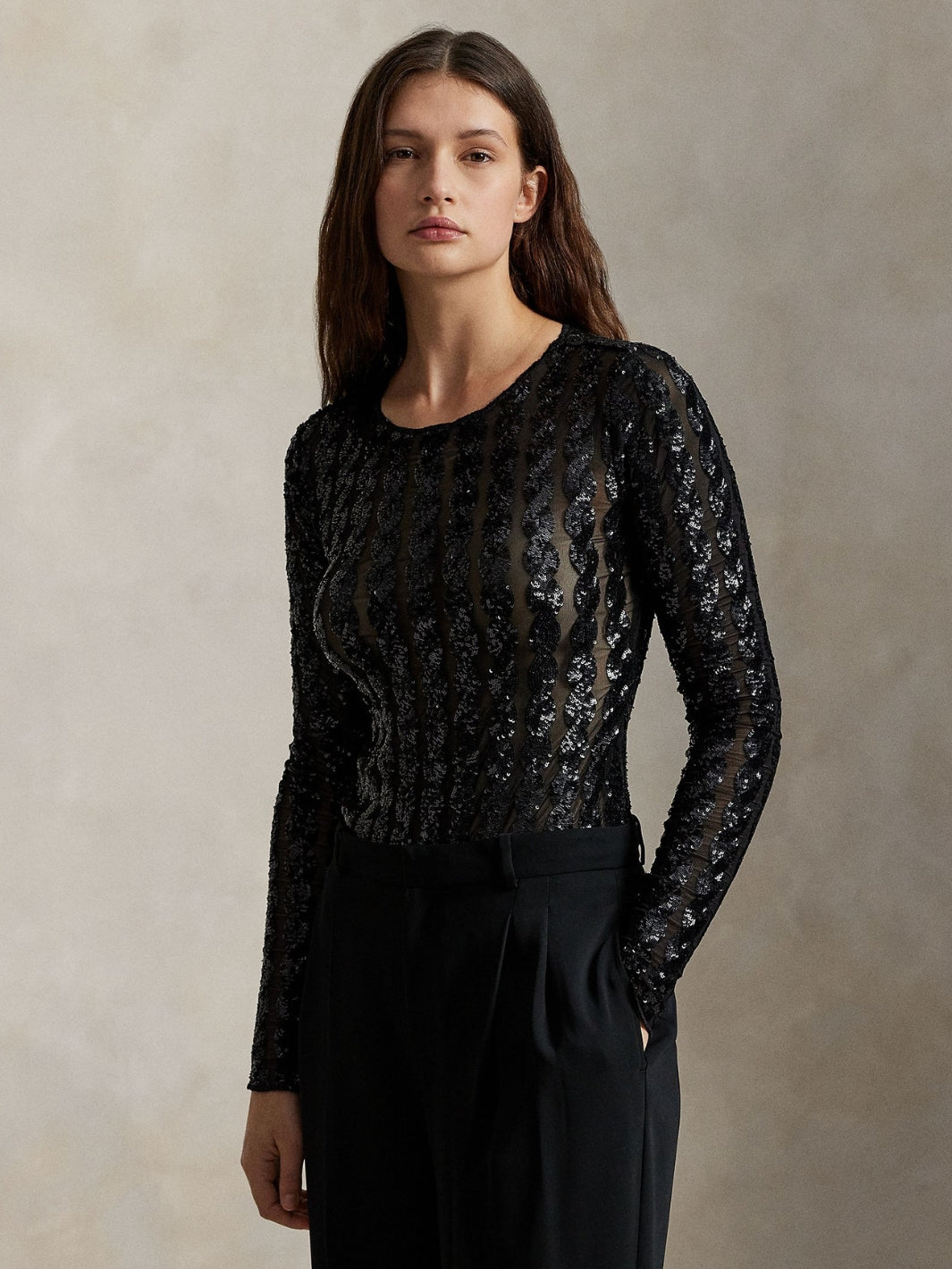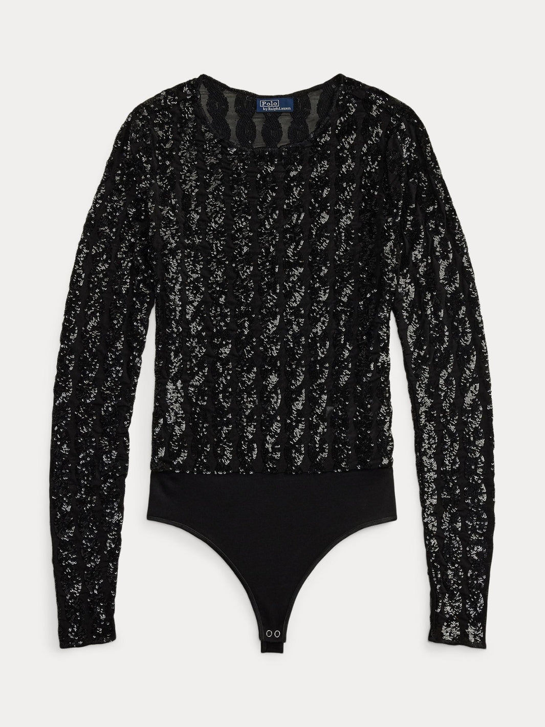 Polo Ralph Lauren Cable-Sequin Mesh Bodysuit Polo Black