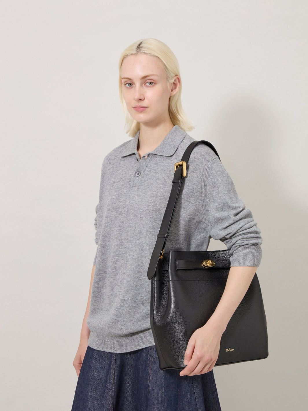 Large Islington Bucket fra Mulberry. En moderne og sofistikert bøtteveske i mykt lær. Vesken har ikoniske Postman's Lock, og kan benyttes som skulderveske eller crossbody.