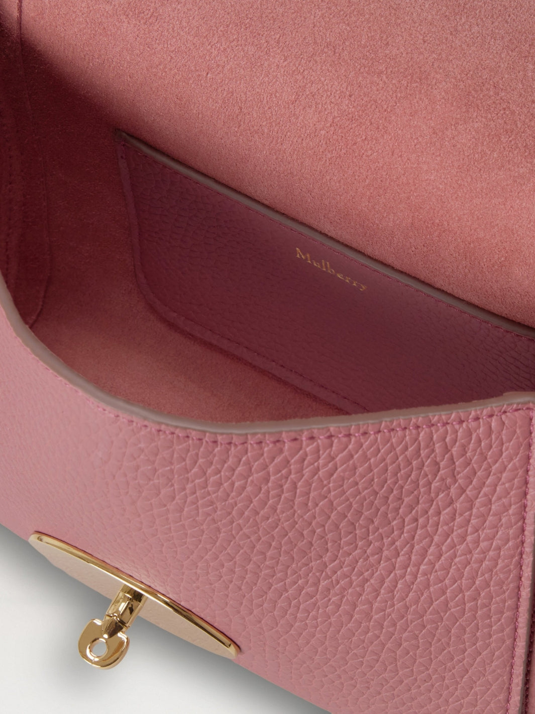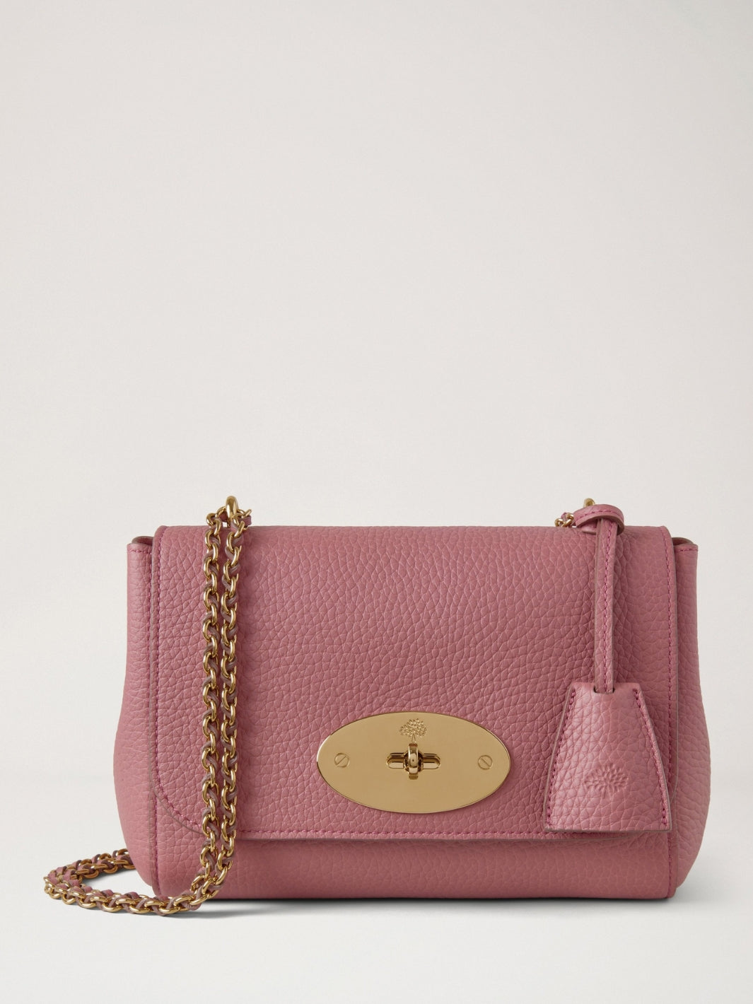 Lily fra Mulberry. Den ikoniske Lily vesken, her i rosa. En tidløs veske, som kan brukes fra dag til kveld på grunn av sin allsidige størrelse og kompakte form. Lily har en vevd lær- og kjederem som kan brukes kort eller langt, og har signaturdetaljer som Postman's Lock og skinnhengelås.