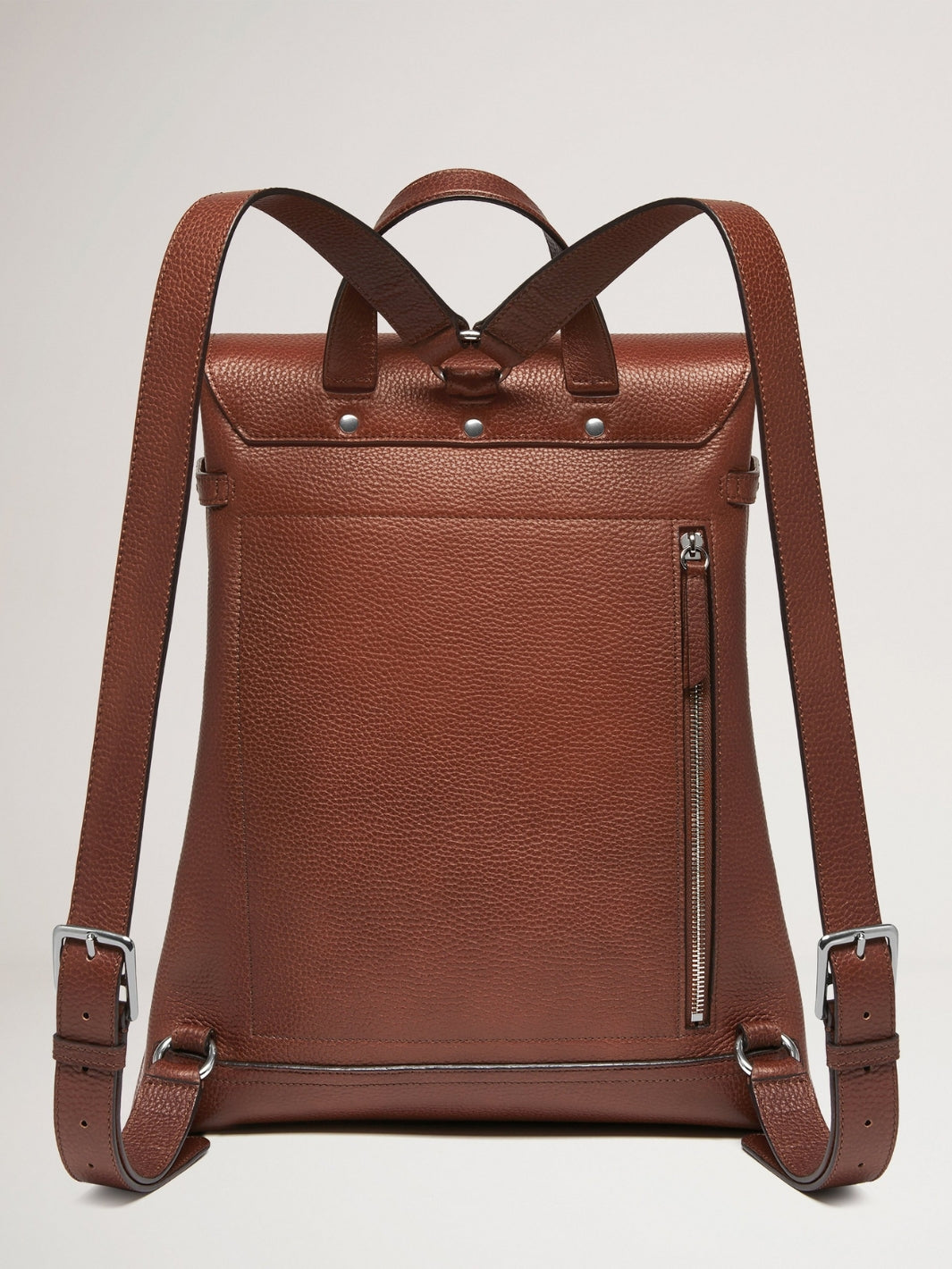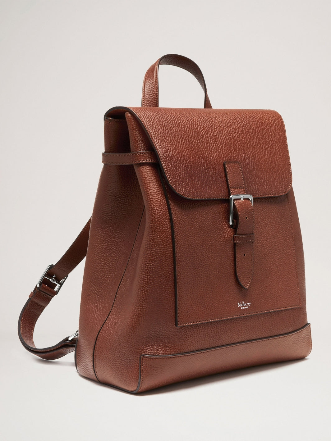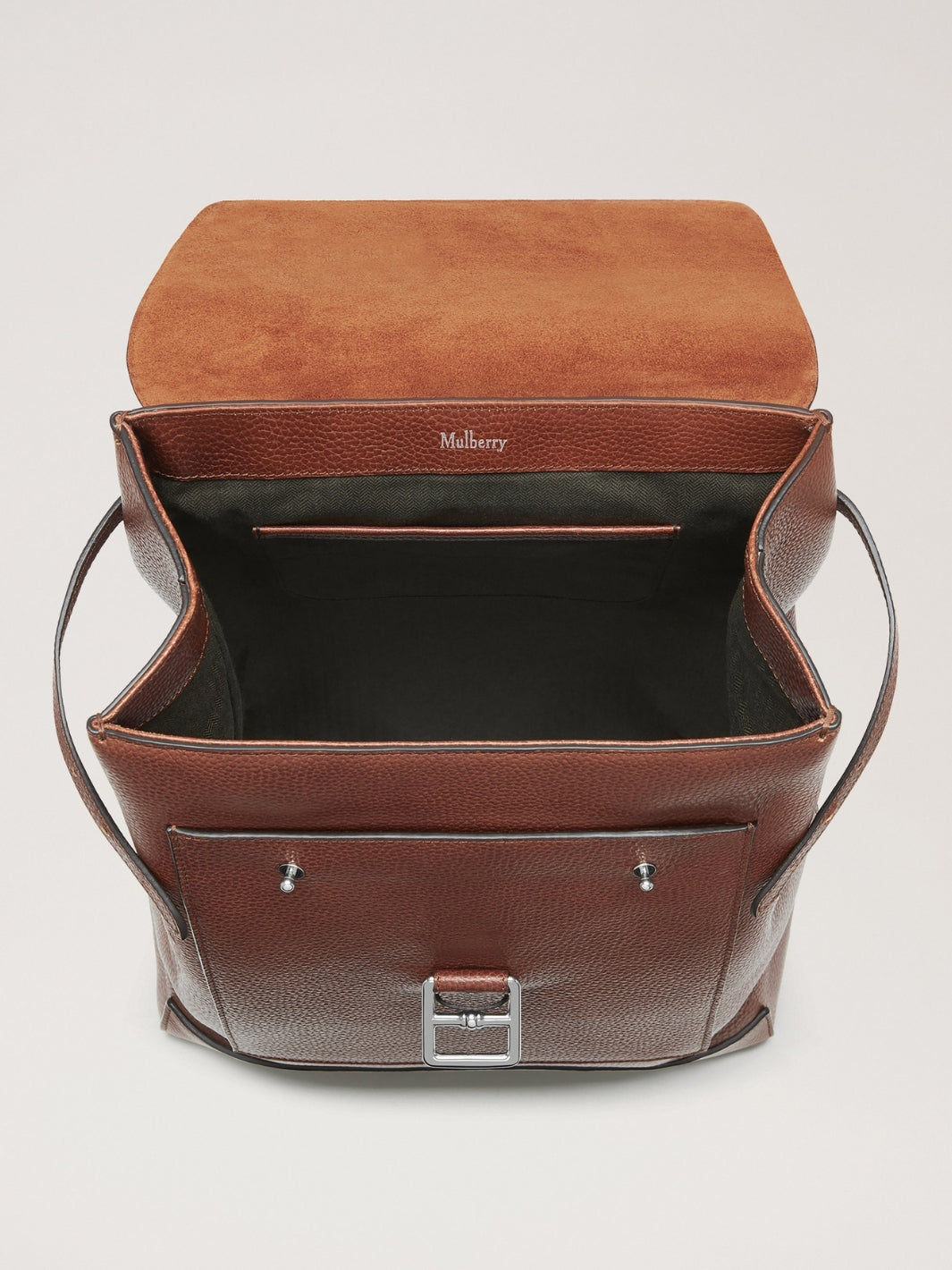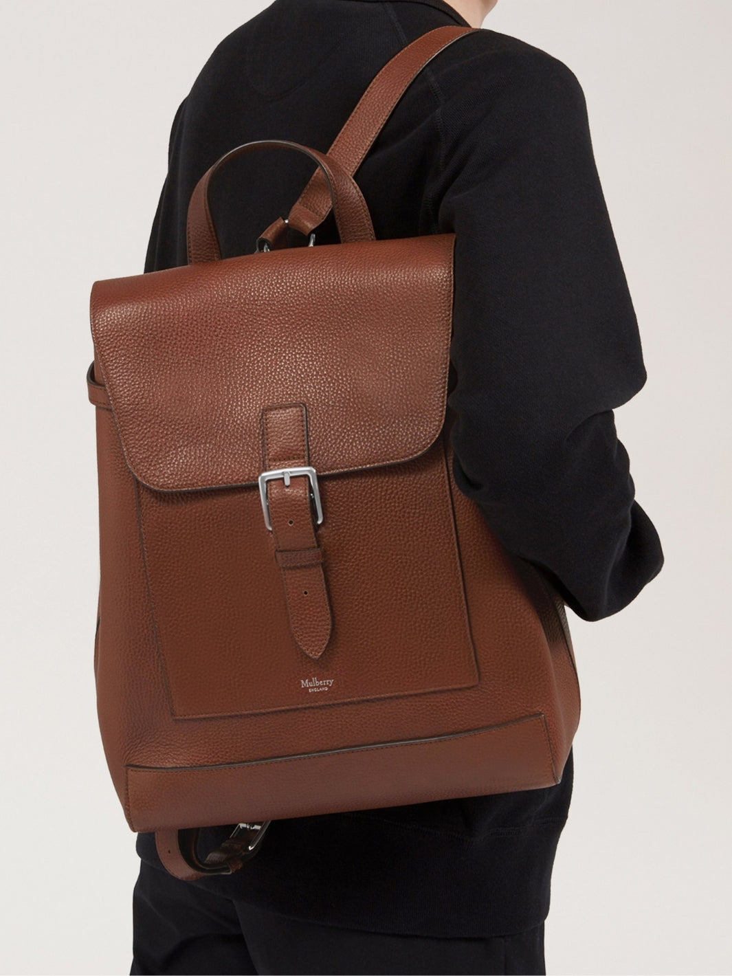 Chiltern Backpack fra Mulberry. En ryggsekk som kombinerer klassisk britisk håndverk med moderne funksjonalitet. Sekken har et romslig hovedrom, justerbare skulderstropper og flere praktiske lommer, inkludert en utvendig glidelåslomme. Med sin klassiske silhuett, fremstår sekken som et elegant og allsidig valg - like passende til arbeidsdager som til helgeturer og reiser.