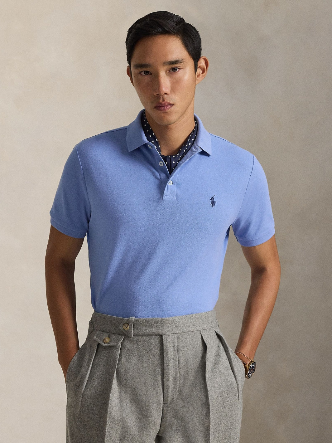 Custom Slim Fit Stretch Mesh Polo Shirt fra Polo Ralph Lauren. Den klassiske piqueskjorten fra Polo, her i blå. Laget av en slitesterk og myk bomullskvalitet.